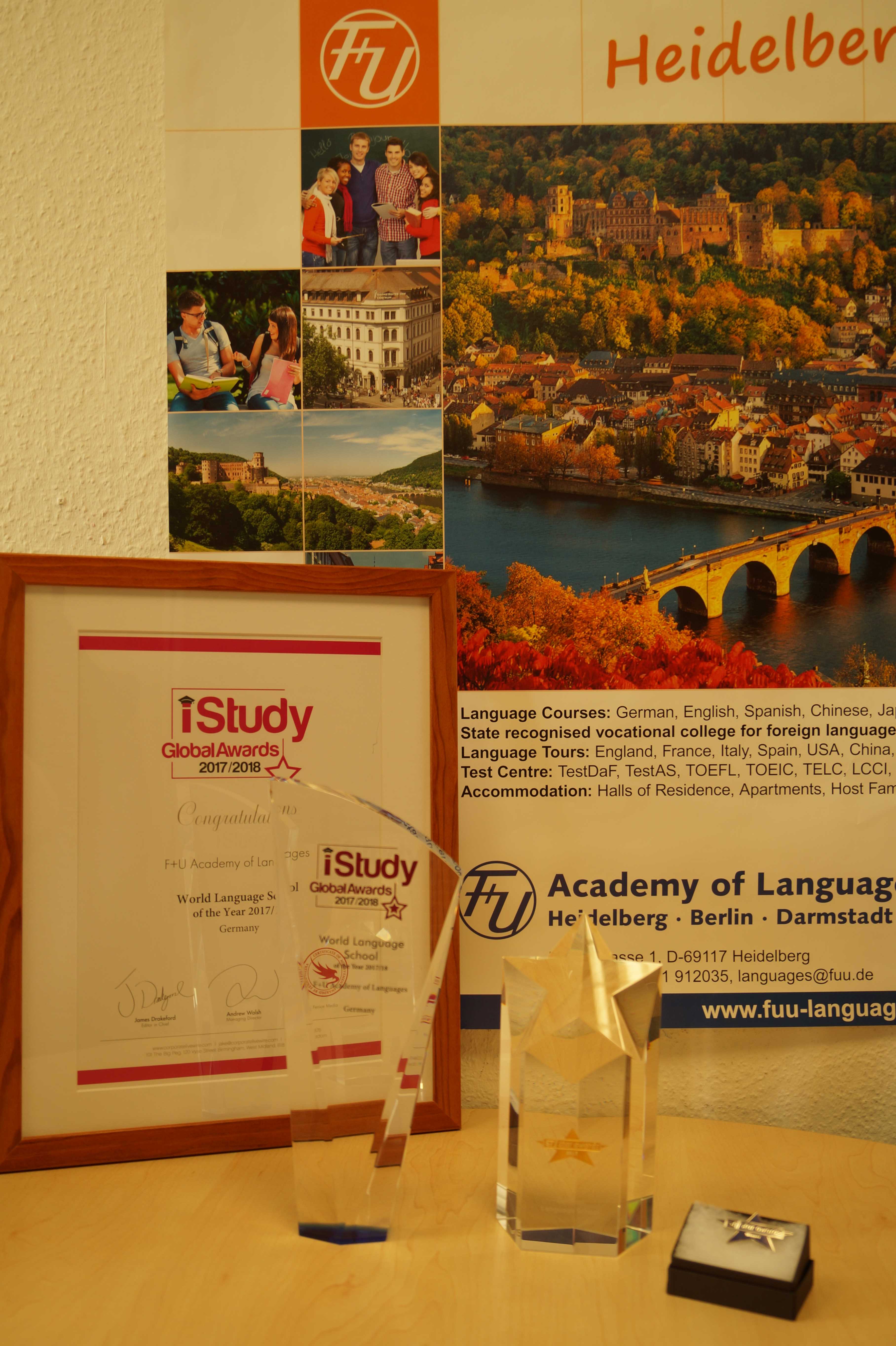 我们屡获国际权威认可,自 2010 年起先后荣获全球语言学院组织客户满意度优秀奖、全球最受学生欢迎语言学院奖,并在 StudyTravel Star Awards、iStudy Guide 及 LanguagesCourse.net 等评选中多次获评“最佳德语语言学校”与卓越奖项。
